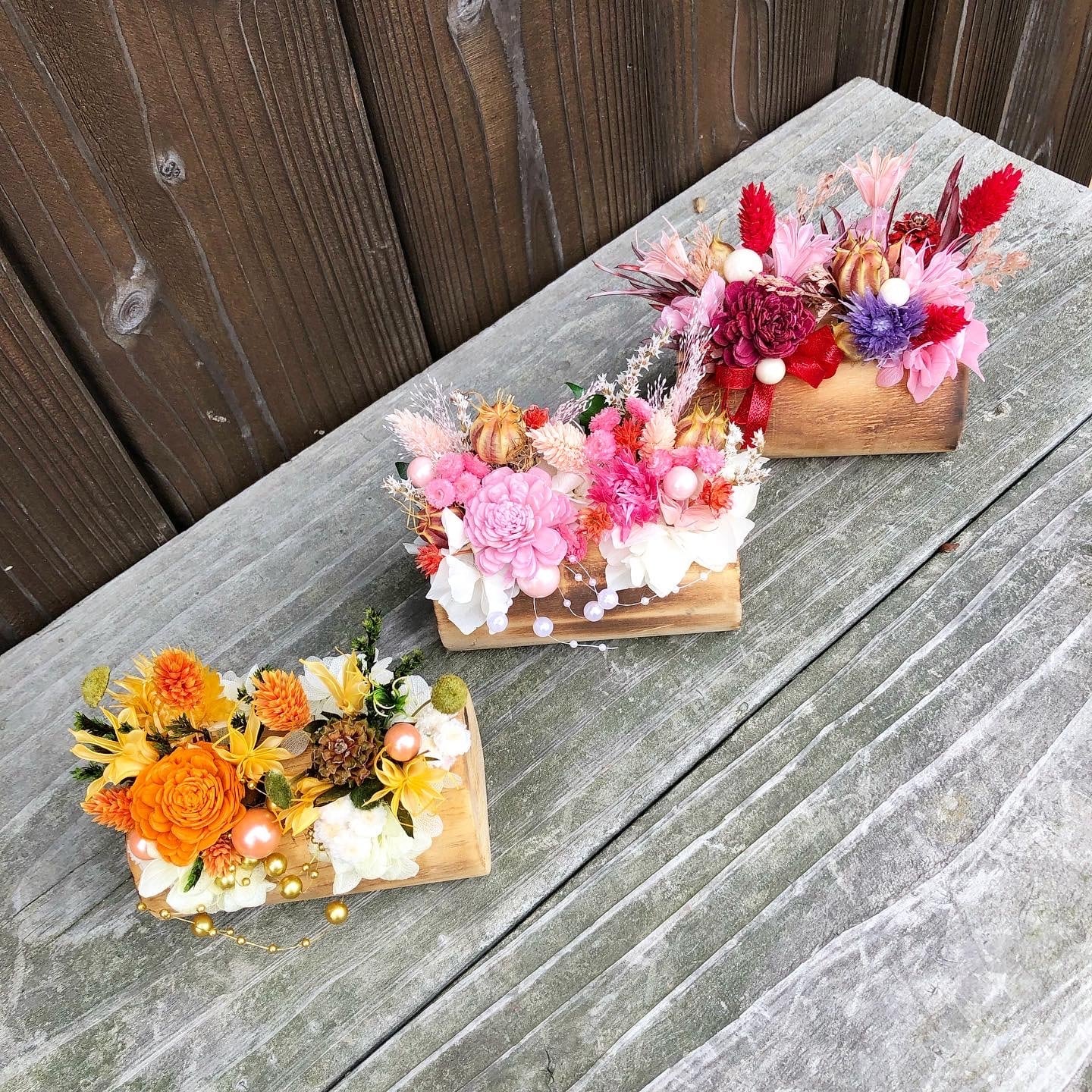 ドライフラワーやプリザーブドフラワーの小花を使ったアレンジメント