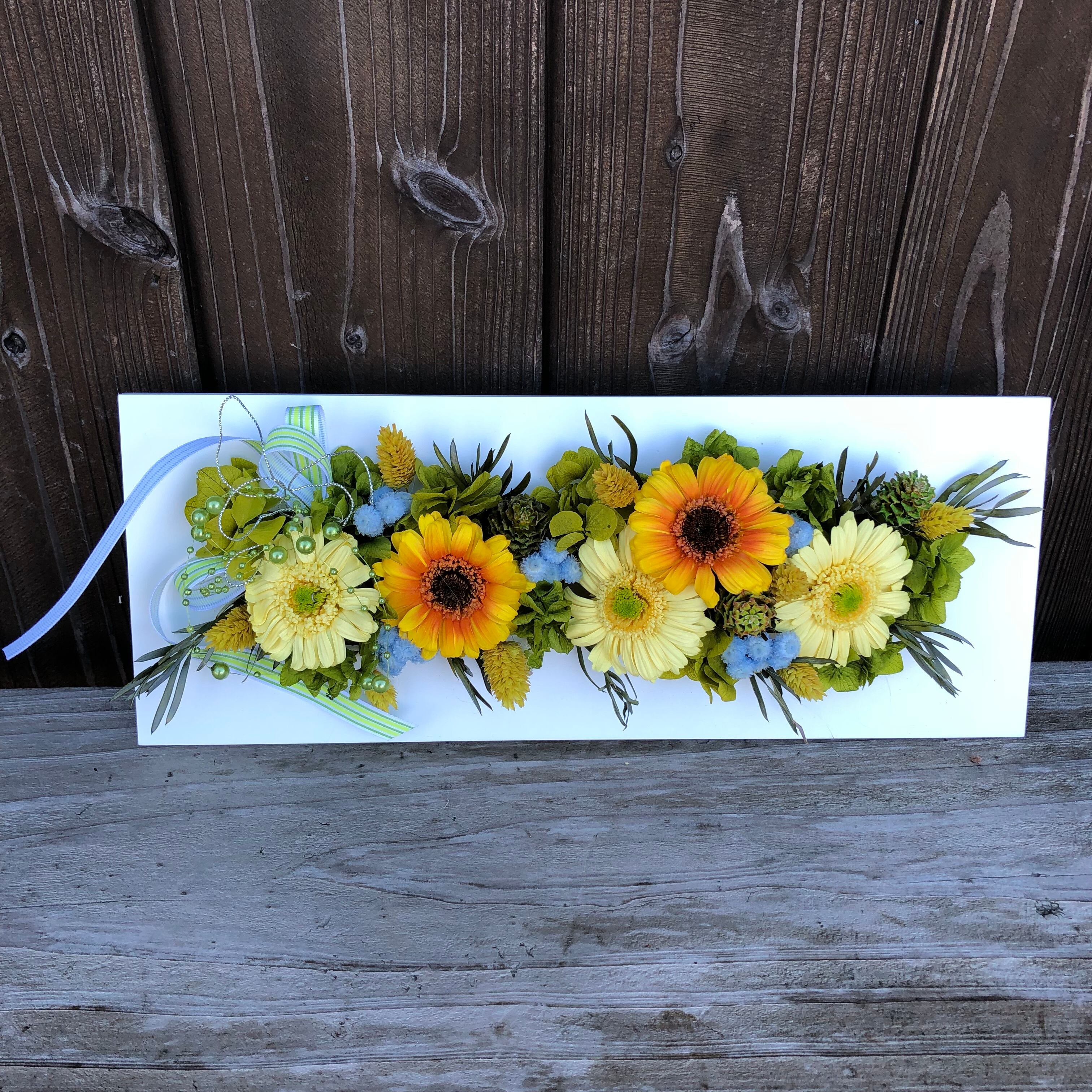 この商品はウッドボードに、プリザーブドフラワーをアレンジしたもので、ソフトな色合いが調和したインテリアに、ナチュラル感をプラスしてくれます。