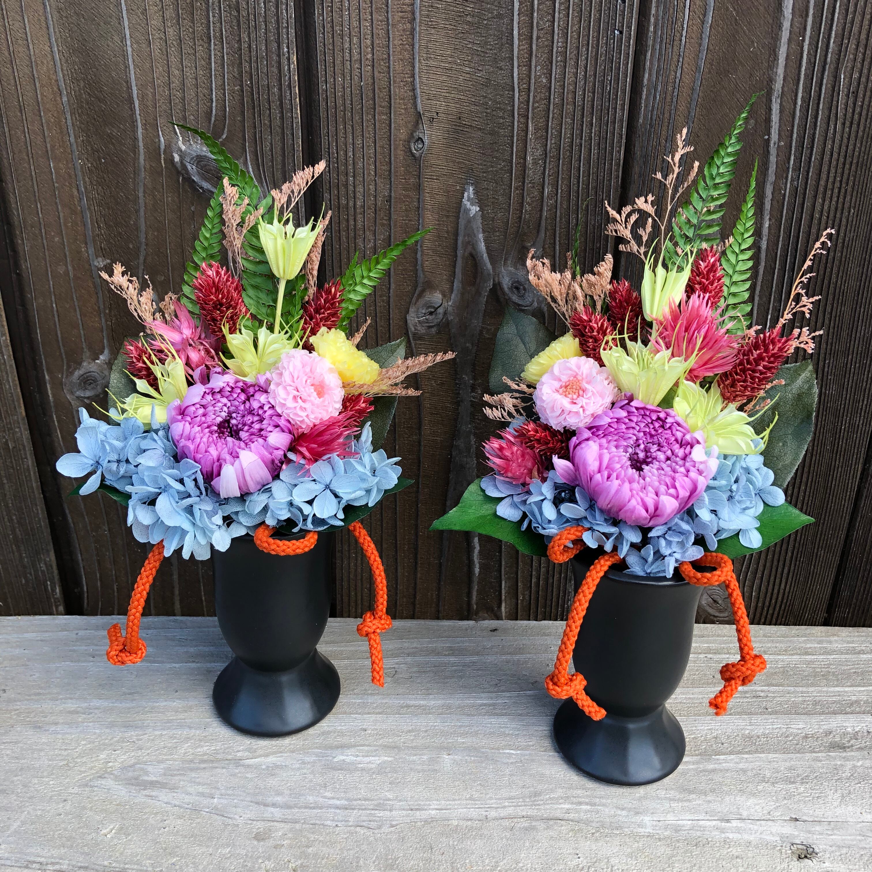 プリザーブドフラワーを使用しており、長期間にわたって鮮度を保つことができます。お供え花として最適なサイズで、お仏壇や位牌のそばに飾ることができます。
